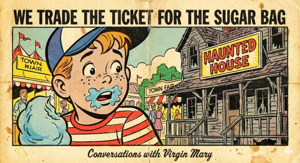 Remember that day at the fair? You were six, maybe seven. All your friends lined up for the Haunted House. Your heart was beating—you wanted to go in, and you wanted to run away. In the end, you stayed outside, eating blue cotton candy. When they came out, they told you about the ghosts and werewolves and skeletons inside. You were fascinated by their stories.