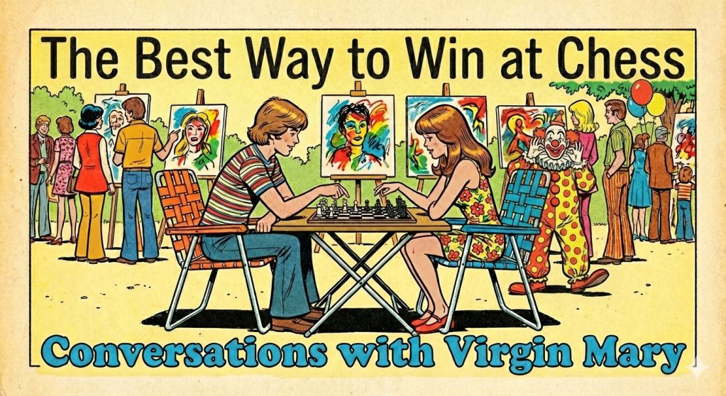“You see what the Virgin Mary is talking about?” he said. “Look at the result. See what you had to sacrifice to conquer the board. Now what? You’ve won—but your opponent hates you. Are you happier? Are you better? This is a wasteland. You don’t have enough pieces left to rebuild what you destroyed. And there’s no way back to the beginning.”