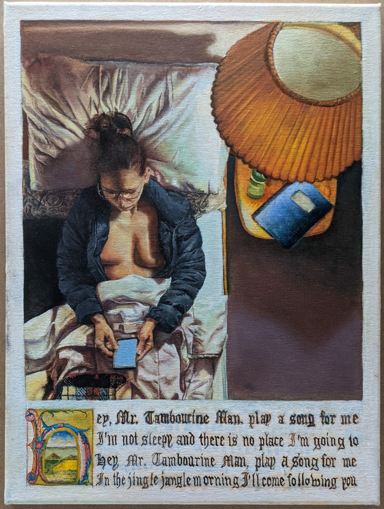 This body of work engages with the language of traditional oil painting while probing its limits through conceptual layering and material precision. Each piece operates as both artifact and experiment: a site where perceptual habits are tested and new frameworks for seeing are proposed. Drawing from art history, machine aesthetics, and personal memory, the paintings unfold over time — not only in their making but in their reception. They invite close reading, contextual thinking, and a willingness to dwell in ambiguity.